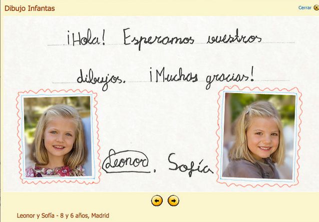 Las hijas del Príncipe Felipe y Letizia Ortiz invitan, con unas imágenes suyas, firmadas por ellas mismas, a todos los niños españoles a que les envíen sus dibujos infantiles.