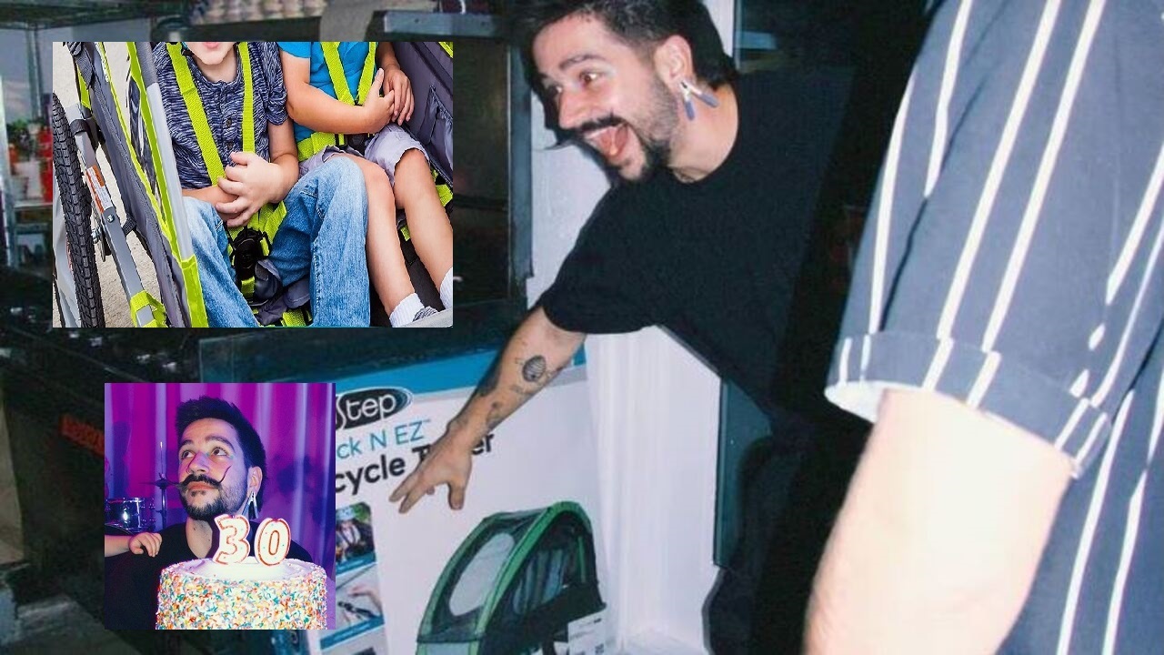 Camilo 30 años y Evaluna le regaló un remolque infantil que le servirá para pasear a Índigo y Amaranto en sus paseos de bicicleta.