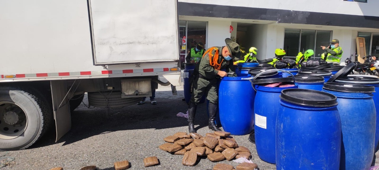 La Policía de Antioquia reportó la captura de un hombre acusado de transportar en un camión 19 canecas con marihuana.