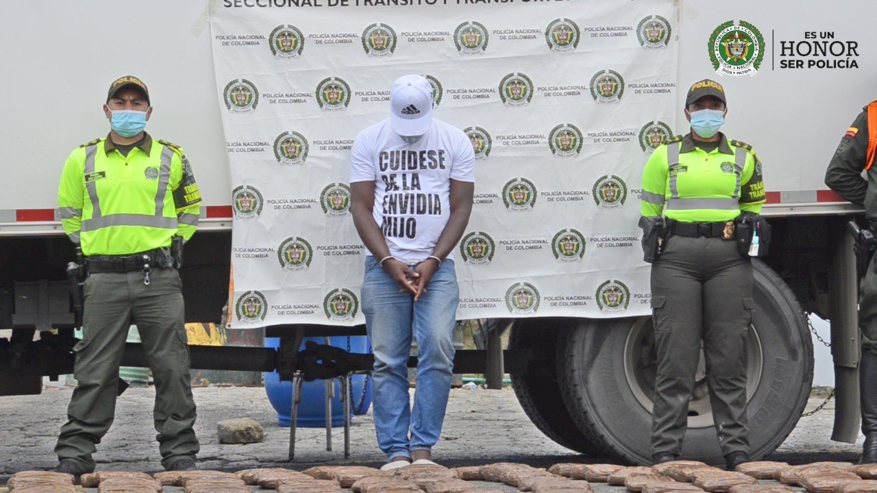 El hombre de 35 años de edad que conducía el vehículo con la marihuana oculta, fue dejado ante la Fiscalía General de la Nación.