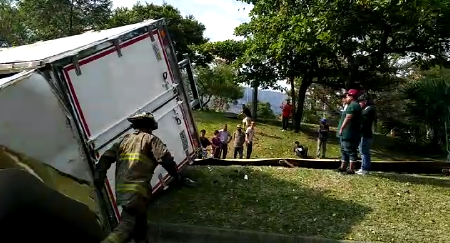 Testigos aseguraron que el conductor del camión quedó atrapado dentro del vehículo por lo que unidades del cuerpo de Bomberos Voluntarios de Medellín fueron en su rescate y lo ayudaron a salir.