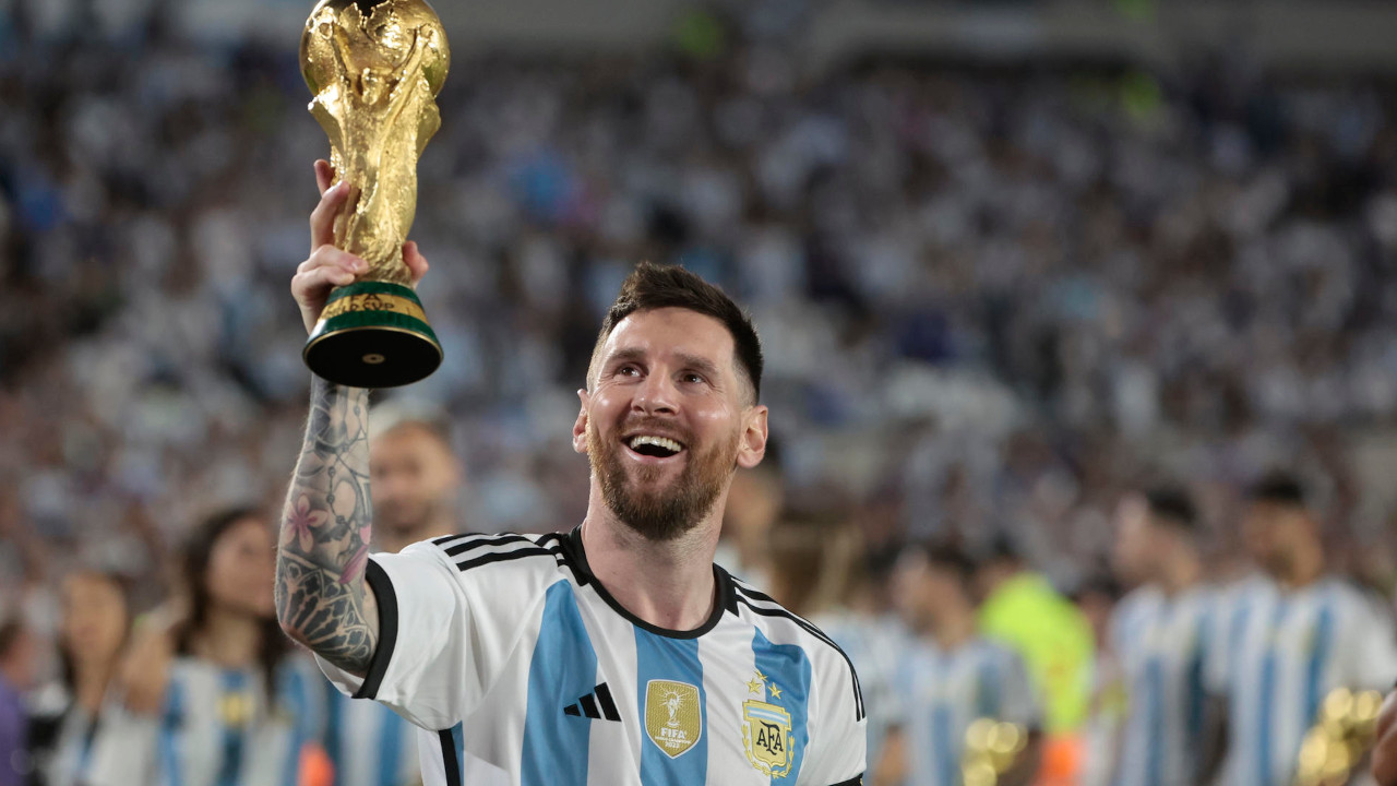 El astro argentino fue el encargado de levantar el trofeo, una imagen que Argentina llevaba esperando desde que se proclamó campeona en la Copa Mundial de la FIFA México de 1986.
