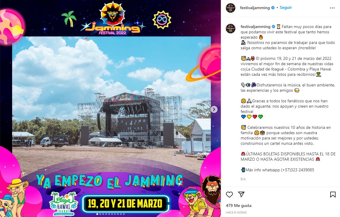 El alcalde de Ibagué, Andrés Fabián Hurtado, confirmó este viernes la cancelación del Jamming Festival 2022, minutos después de que la SIC anunciara un seguimiento al evento, ante las múltiples cancelaciones de los artistas y cambios en el cartel inicial.