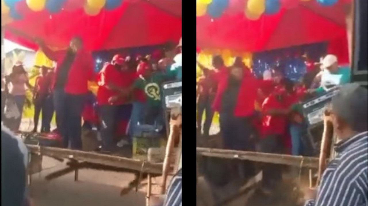 En la grabación se ve al candidato de la dictadura para la gobernación de Portuguesa, Primitivo Cedeño, momento cuando en medio de su discurso de campaña cayó estrepitosamente tras colapsar su tarima.