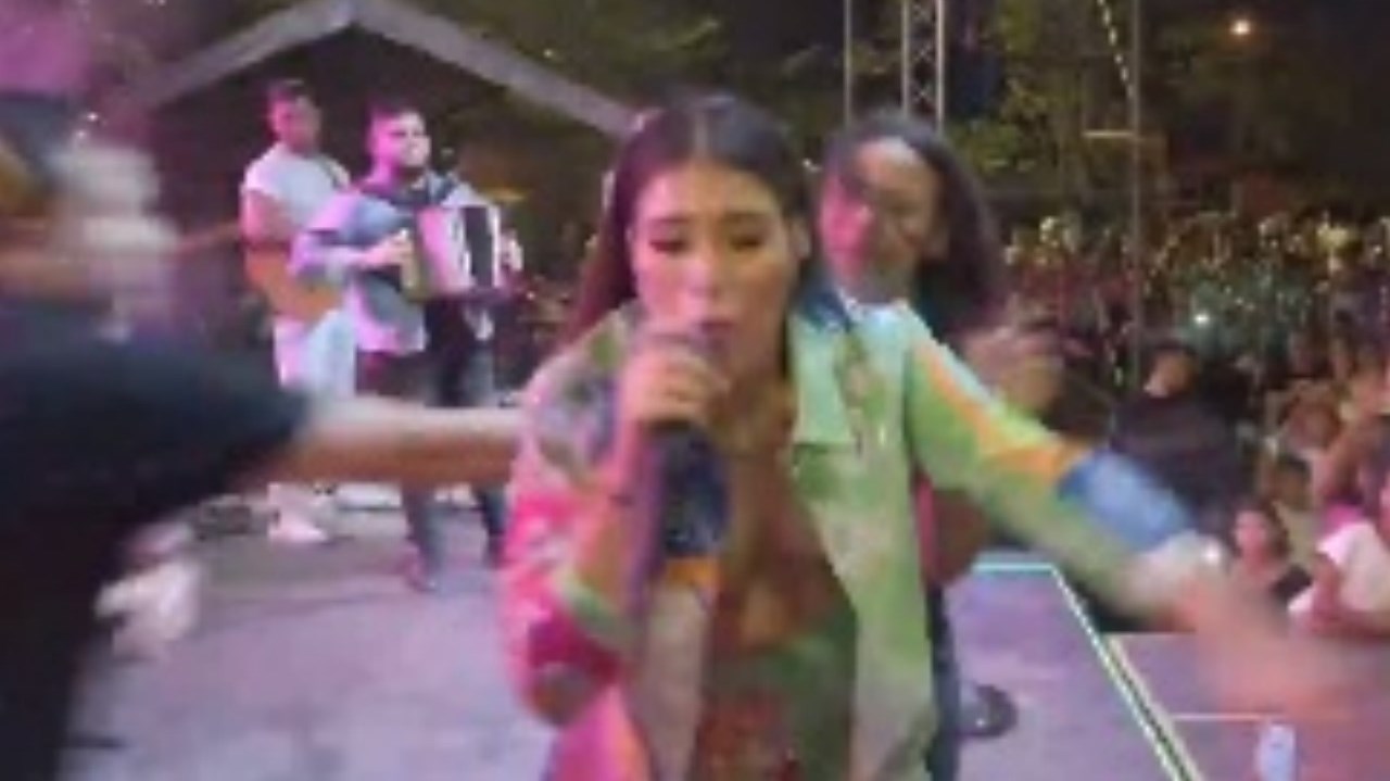 En las imágenes se ve como la artista le ofrece el micrófono a la mujer para que diga lo que siente, los asistentes del concierto presenciaron el bochornoso momento, pero luego de unos minutos siguieron cantando y celebrando con la cantante.