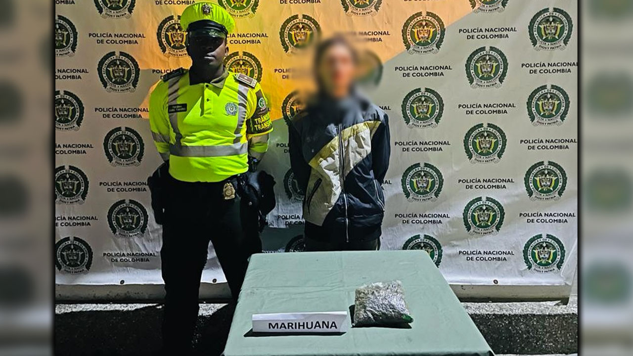 La captura se dio sobre la autopista Medellín – Bogotá, y el joven de 21 años, quien se encontraba en condición de peatón llevaba consigo 206 gramos de marihuana.