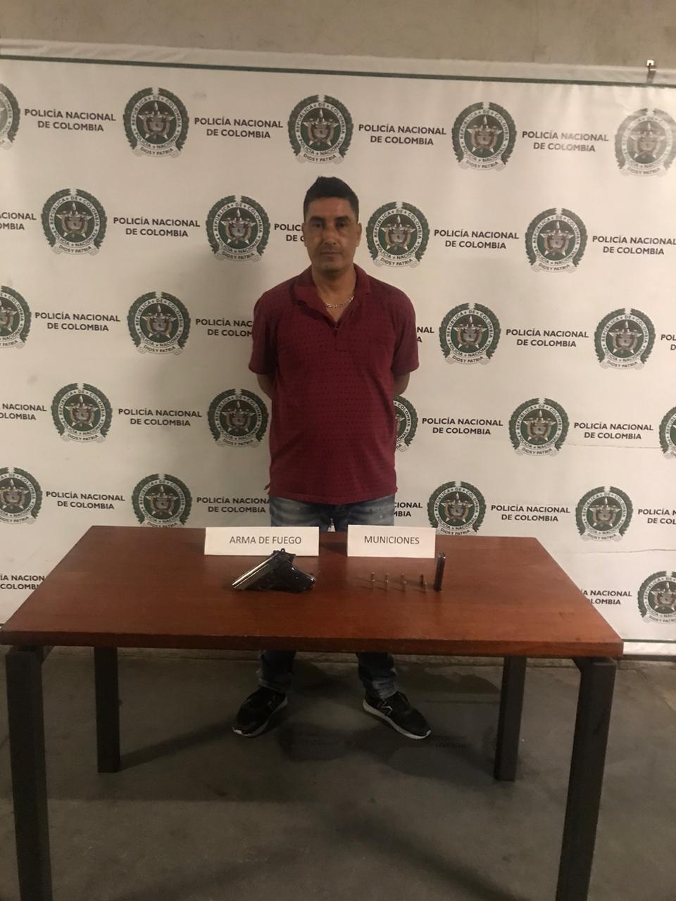 El hecho se presentó en la calle 33 con la 34, allí fue aprehendido este ciudadano quien se le solicita sus antecedentes y figuraba con un caso de violencia intrafamiliar; así mismo, en su vivienda se el encontró esta arma, una pistola Walter 765 mm.