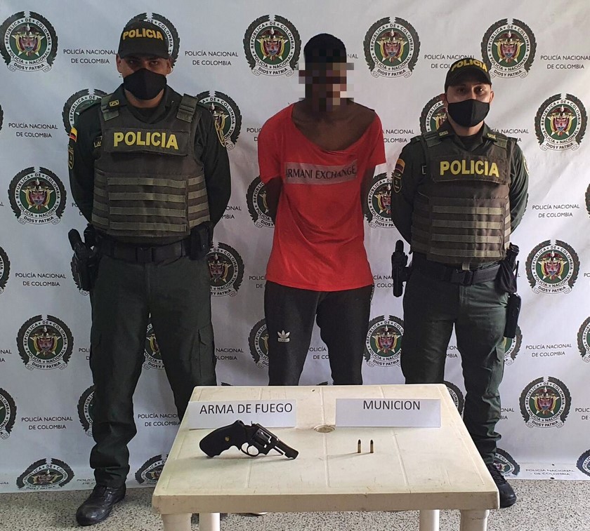 Su captura se produjo en el barrio Brisas del municipio de Turbo, donde los uniformados, adelantaban actividades de vigilancia y control, durante el procedimiento se le encontró en su poder un arma de fuego tipo revolver calibre 32 y dos cartuchos calibre 22 ml, por lo que de inmediato es puesto a disposición de la Fiscalía Seccional 114 de Turbo, donde se adelanta el proceso de judicialización.