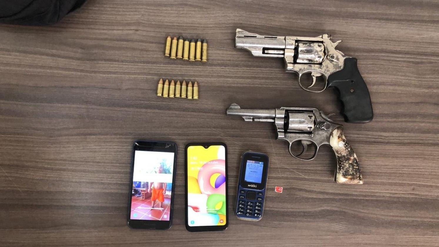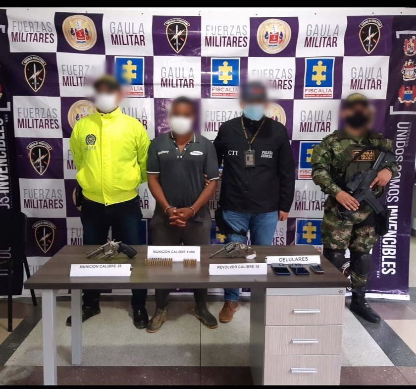 No obstante, se adelantó el registro de los demás pasajeros del automotor y así fue ubicado ‘Kiko’, quien al momento de su captura portaba un bolso que contenía dos armas de fuego tipo revólver calibre 38, 26 cartuchos y 3 celulares.