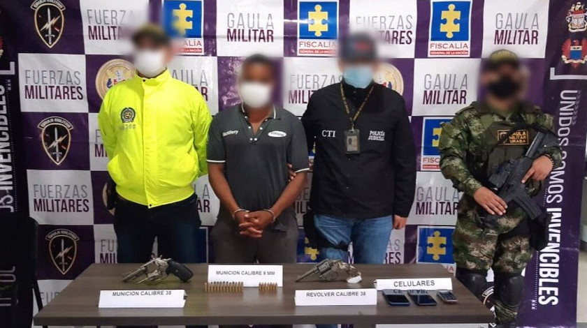 No obstante, se adelantó el registro de los demás pasajeros del automotor y así fue ubicado ‘Kiko’, quien al momento de su captura portaba un bolso que contenía dos armas de fuego tipo revólver calibre 38, 26 cartuchos y 3 celulares.
