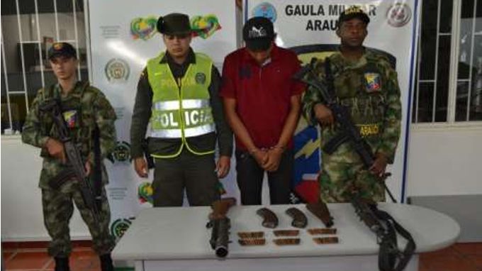 Minuto30.com .- En el puente conocido como Caño Jesús sobre la vía que del municipio de Arauca conduce al interior del departamento, un joven de 20 años, integrante del grupo guerrillero ELN, natural del municipio de Tame y residente en la vereda Monserrate, fue sorprendido en flagrancia por tropas del Gaula Militar, cuando transportaba importante material de guerra.