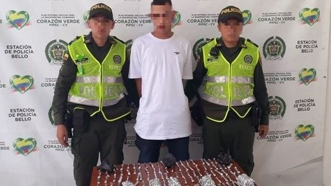 Según las autoridades, el capturado que fue sorprendido en sector El Chispero, al parecer iba a comercializar la droga en el municipio de Bello.
