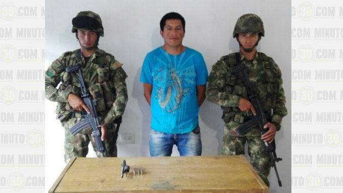 El sujeto de 28 años oriundo de Balboa Cauca, fue capturado portando ilegalmente un revolver Smith Wesson calibre 38 y 6 cartuchos para el mismo.