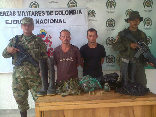 La captura se produjo gracias a la información suministrada por fuente humana quien alertó a las autoridades sobre la presencia de estos sujetos quienes vestían uniforme de uso privativo de las Fuerzas Militares y se encontraban merodeando la zona de manera sospechosa. “Gracias a la información oportuna de un ciudadano se adelantó la operación en donde logramos capturar a estos dos hombres que tenían en su poder dos granadas de mano y 13 cartuchos para pistola 9mm” expresó el Teniente Coronel Ignacio Gerenas Salazar, Comandante del Batallón de Alta Montaña No.6 Mayor Robinson Ruíz Garzón.