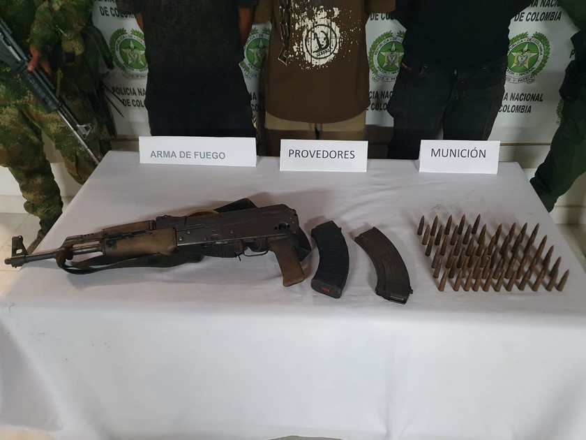 “A los capturados les fueron incautados un arma larga, 57 cartuchos, material que sería utilizado por estos delincuentes para cometer actos delictivos contra la población civil y miembros de la Fuerza Pública, y dos USB que serán del análisis de la inteligencia militar”, detalló el Ejército.