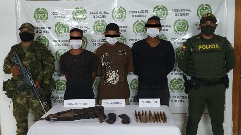 “A los capturados les fueron incautados un arma larga, 57 cartuchos, material que sería utilizado por estos delincuentes para cometer actos delictivos contra la población civil y miembros de la Fuerza Pública, y dos USB que serán del análisis de la inteligencia militar”, detalló el Ejército.