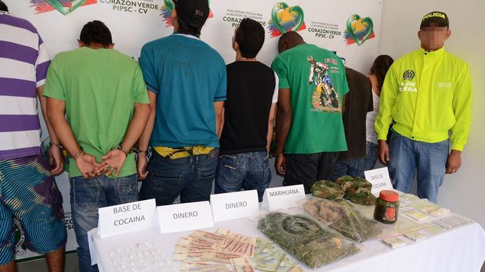 - Andrés Felipe González de 29 años y Yeison Andrés Urrego Macías de 23 años, a quienes se les incautó de 62 gramos de bazuco listos para la venta, 2 celulares, 2 gorras pixeladas del Ejército Nacional, 1 computador portátil, 2 cuadernos con manuscritos y 462.000 pesos producto de la venta de estupefacientes.