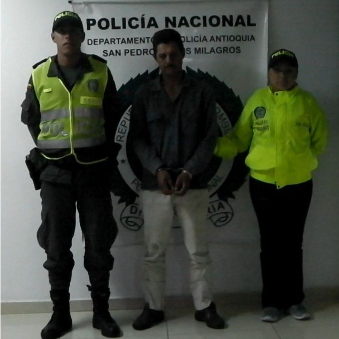 San Pedro de los Milagros: En zona rural vereda El Tambo, José Hugo Posada Sinitave de 43 años, requerido mediante orden de captura, por el delito de Acceso Carnal Violento Agravado, Violencia Intrafamiliar Agravado e Incesto, por acceso carnal continuo ocurrido durante los últimos cuatro años del cual era víctima su propia hija, quien quedó embarazada a los 15 años y nuevamente a los 16 años.