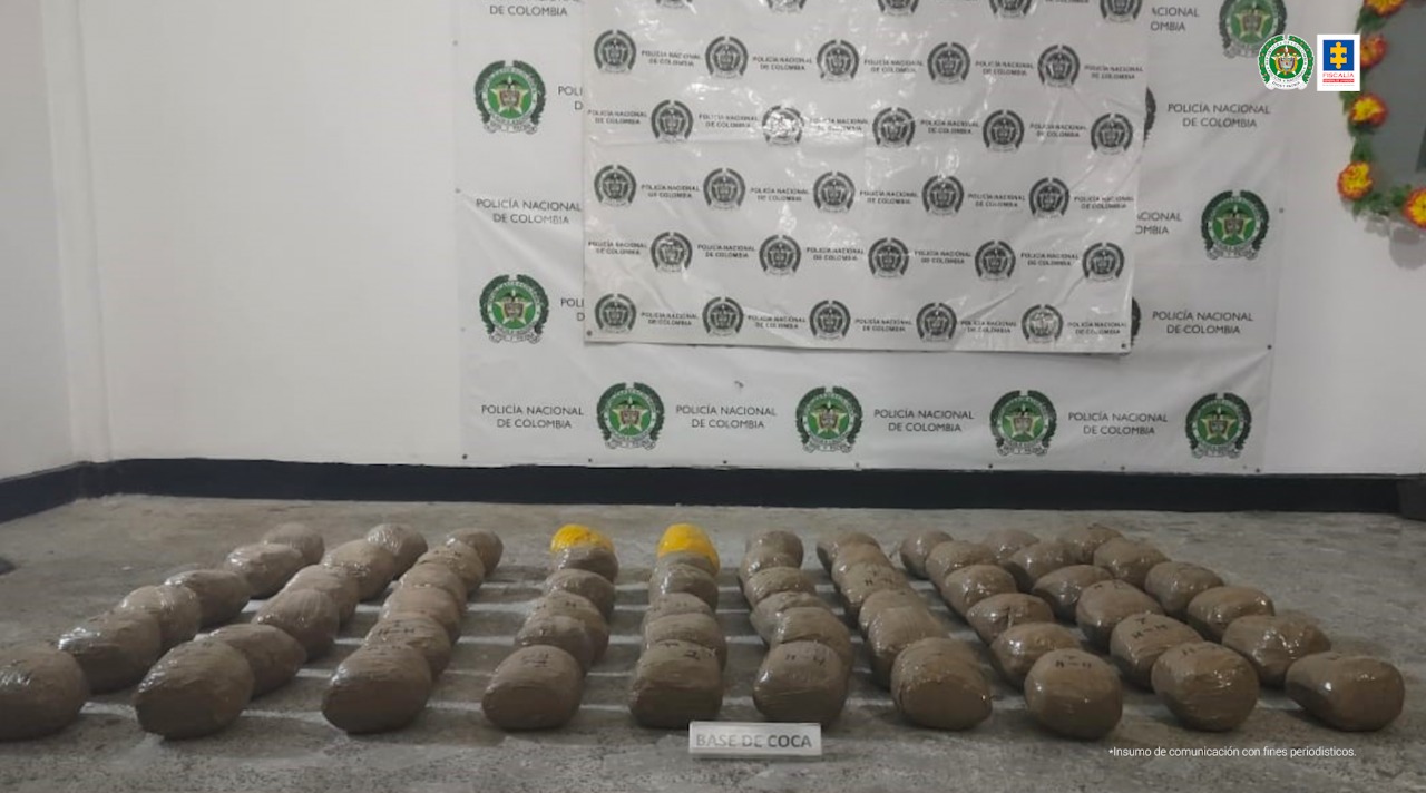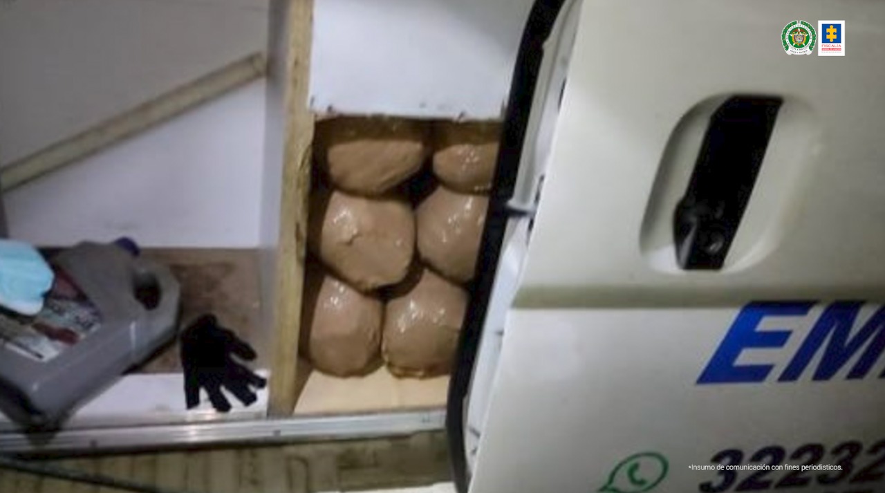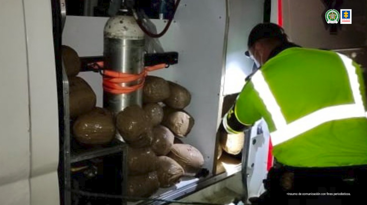 La mañana del pasado jueves 3 de enero, el mayor general Juan Alberto Libreros Morales, director de Tránsito y Trasporte de la Policía Nacional, confirmó el hallazgo de 120 kilos de base de coca que eran movilizados en una ambulancia en la vía que conduce a La Pintada, Antioquia.