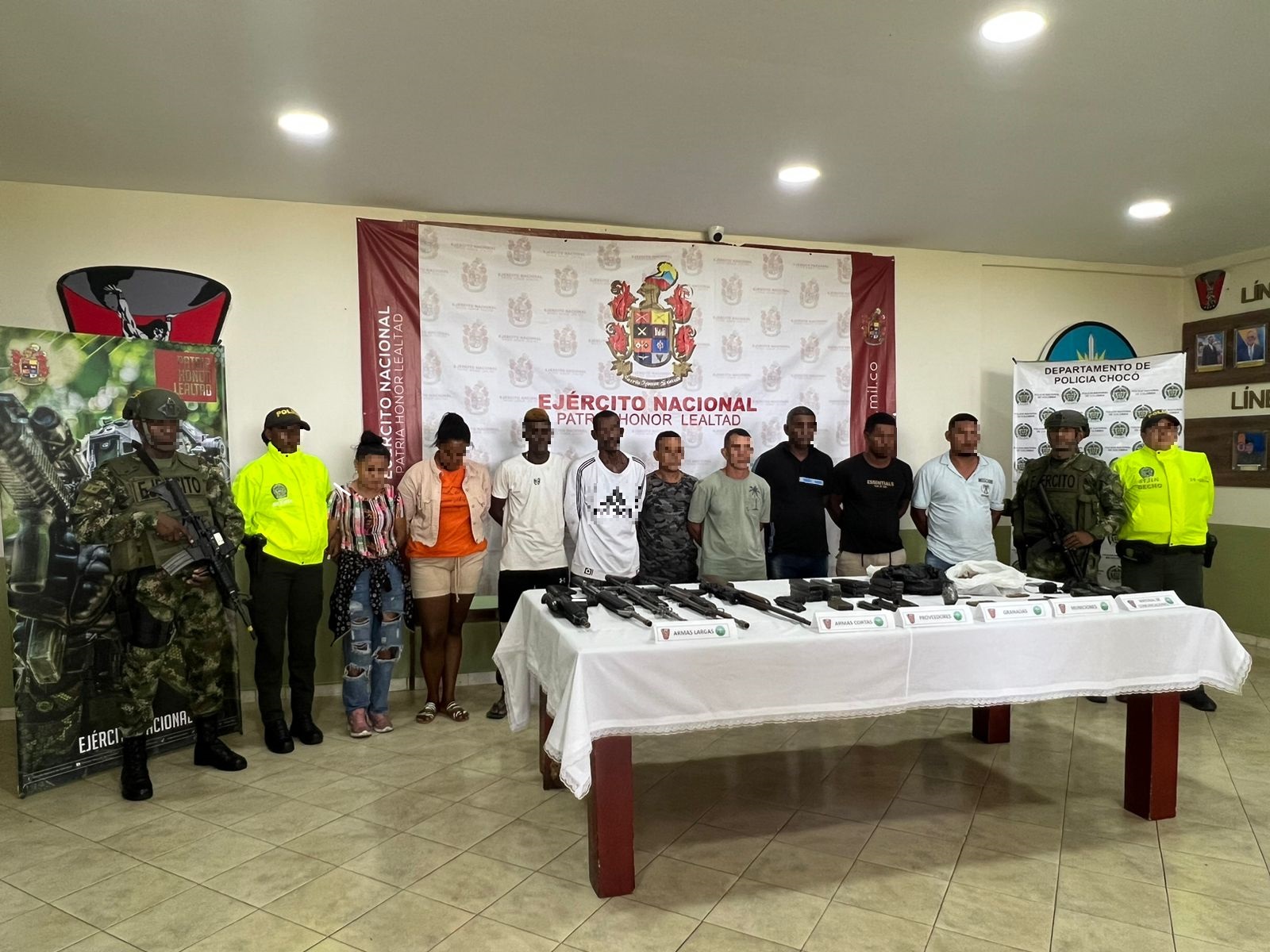 De acuerdo con las autoridades, estas personas desarrollarían distintas actividades delincuenciales en favor de esa organización, por lo que en medio de la captura también se logró la incautación de material de guerra.