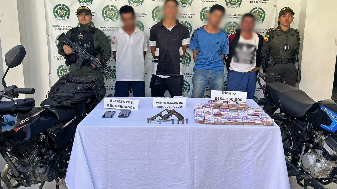 En la captura se les incautó más de $154 millones de pesos, además de una motocicleta y un arma de fuego.