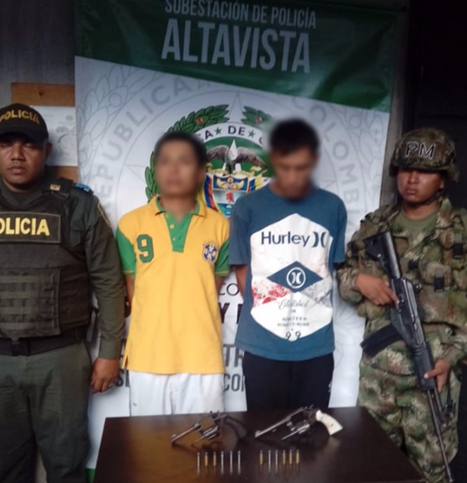 Las autoridades capturaron en el sector La Lágrima del corregimiento AltaVista a dos sujetos que andaban armados por el sector, sin los debidos permisos.