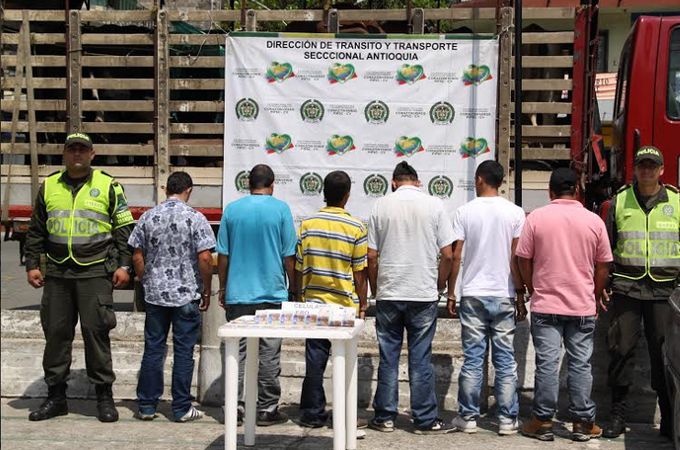 En zona rural, vereda la Cristalina, vía Medellín-Puerto Berrío, mediante puesto de control y en cumplimiento a la estrategia de seguridad vial, fueron capturados 6 sujetos entre los 22 y 51 años a quienes se les hallo en su poder 8 semovientes vacunos clase Holstein, cebú, brama con la marca R avaluados en $ 18.000.000 y 5.000.000 millones de pesos los cuales habían sido hurtado horas entes en la finca EL PORVENIR de vereda aguas claras del municipio de Barbosa.