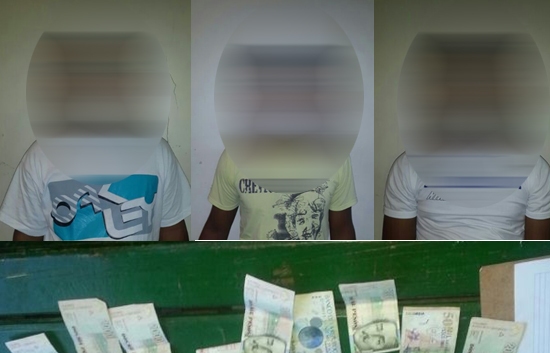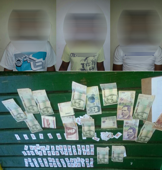 Efectivamente en el lugar son detectados tres sujetos, quienes mediante labores de requisa se les incauta dinero, fichas de control, un cuaderno y varios celulares.