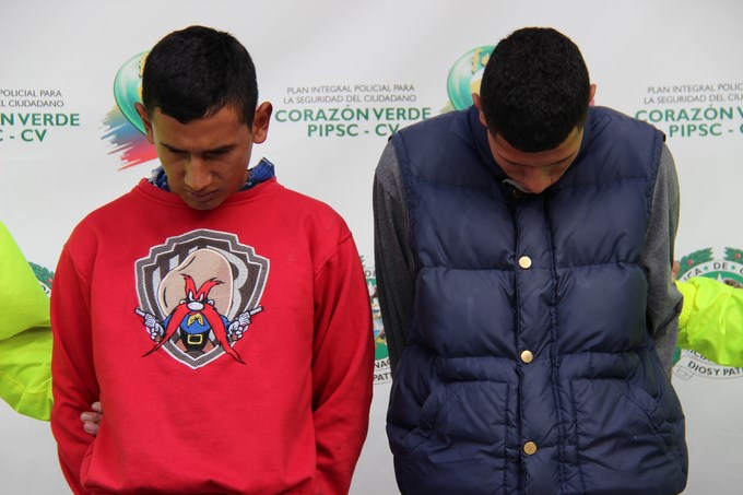 01-09-2014 Rueda de prensa caso profesor de matematicas (4) (Copiar)A poco menos de un mes de sucedidos los hechos, la policía pudo identificar a los responsables del hecho de sangre, gracias a las cámaras de vigilancia del sector, así mismo, información suministrada por los testigos fueron datos claves para dar con el paradero de Germán Ernesto Ayala alias ‘Guayu’ y Cristian Mauricio Bermúdez alias ‘El Zorrero’, autores materiales de la muerte del profesor de 53 años