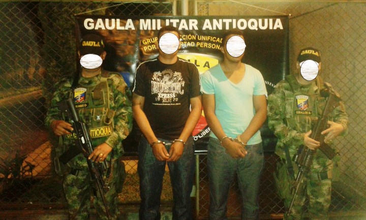 De igual forma, tropas del Gaula Militar de Antioquia en conjunto con el Cuerpo Técnico de Investigación CTI, capturaron a dos sujetos en flagrancia, en un parqueadero cercano al Centro Administrativo La Alpujarra, en pleno centro de Medellín, por el delito de secuestro extorsivo los cuales se estaban haciendo pasar por miembros de la Organización Delincuencial Integrada al Narcotráfico Odin ‘La Oficina’ de Envigado.