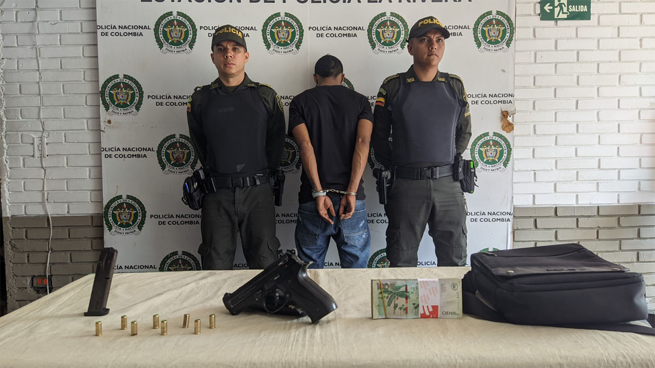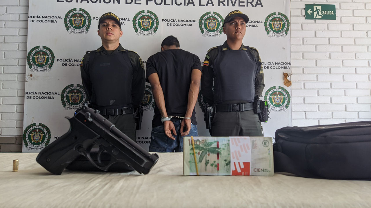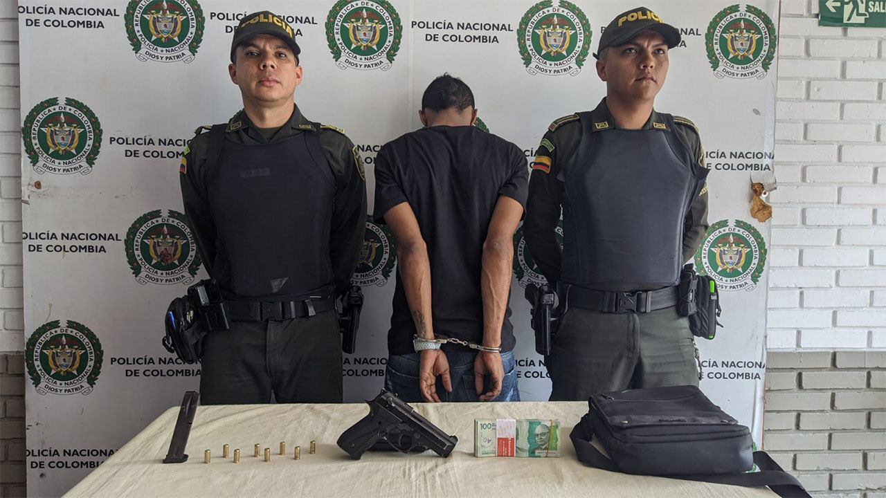 El hombre de 28 años fue dejado a disposición de la Fiscalía General de la Nación por hurto agravado y porte ilegal de armas de fuego