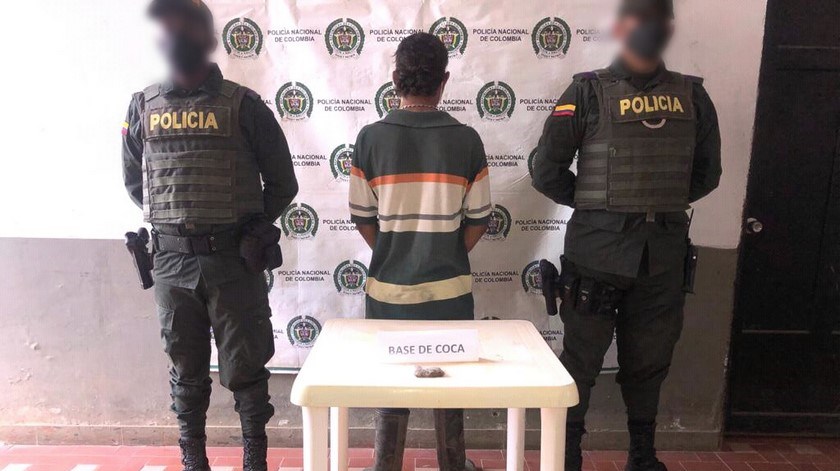 La captura se materializó cuando agentes de Policía judicial estaba haciendo patrullaje, al observar a esta persona en actitud sospechosa le hicieron un registro y le hallaron 2 bolsas transparentes, las cuales en su interior contenían una sustancia con características similares a la base de coca teniendo, con un peso de 41 gramos.