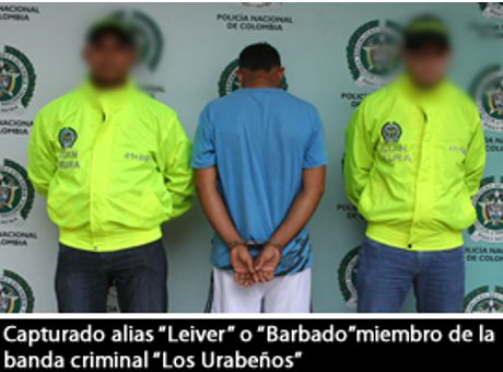En cumplimiento al Plan Corazón Verde, Estrategia Institucional Contra las Bandas Criminales y “Operación Troya Caribe II”, en las últimas horas personal policial llevó a cabo la captura de alias “Leiver” o “Barbao”, quien de acuerdo con las investigaciones hacia parte de la banda criminal “los Urabeños”, con injerencia en los municipios de Apartadó, Chigorodó y Carepa.