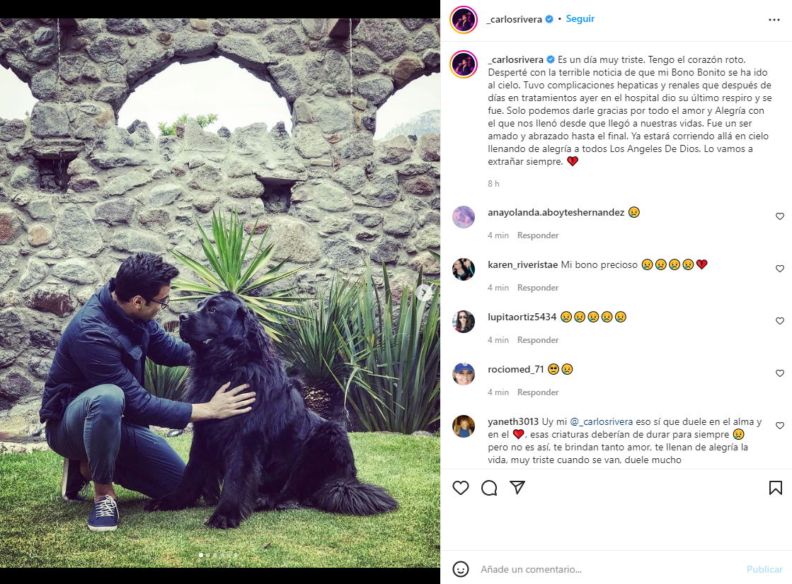 El cantante mexicano Carlos Rivera, contó desde su Instagram que pasa unos días complicados y tristes luego de la muerte de su mascota que murió a causa de complicaciones de salud.