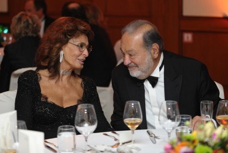 En una elegante cena en Ginebra, Suiza, se dio cita el importante empresario mexicano Carlos Slim  y la famosa actriz italiana Sophia Loren, donde fueron fotografiados disfrutando de una gratificante noche.