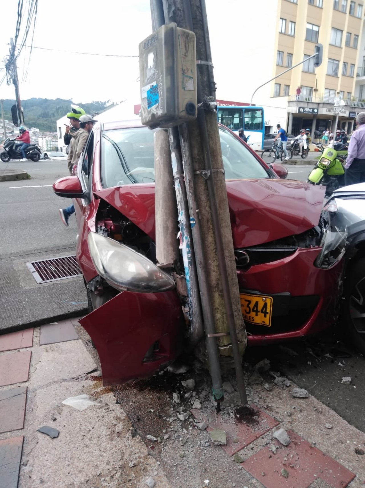 ¡Qué ‘tramacazo’! Carro chocó contra poste en la avenida Santander, Manizales