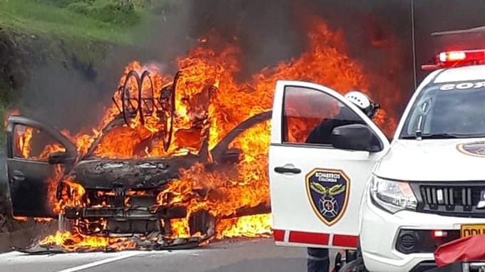 El hecho ocurrió en la vía al Sisga, al parecer, el incendio se originó por una falla mecánica.