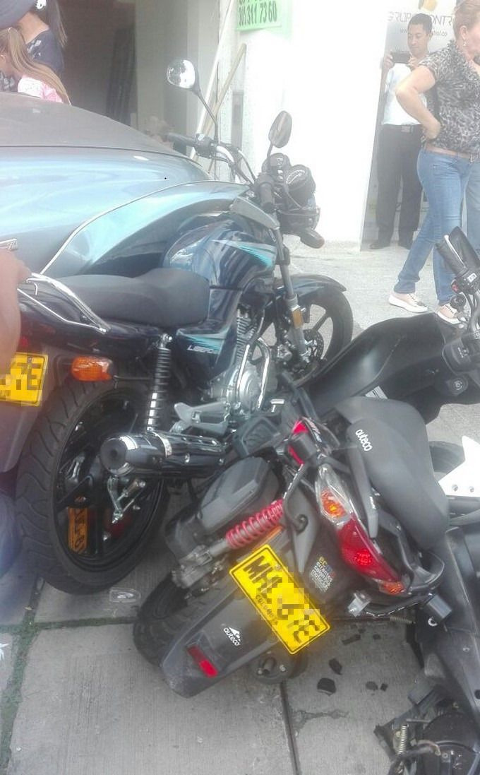 Un automóvil se fue de frente contra varias motocicletas en la calle 48c con carrera 66 del barrio Suramericana en la comuna 11-Laureles, luego de que su conductor aparentemente perdiera el control.