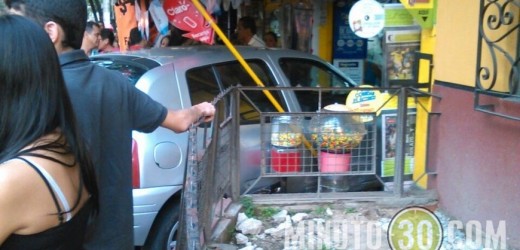 Iban siendo las 5:30 de la tarde de ayer jueves, cuando un Renault Clío que se desplazaba por la carrera 50 con la calle 73 A del barrio Santa María, en Itagüí, sufrío un percance y terminó estrellándose contra el almacén Variedades Los Delfines.