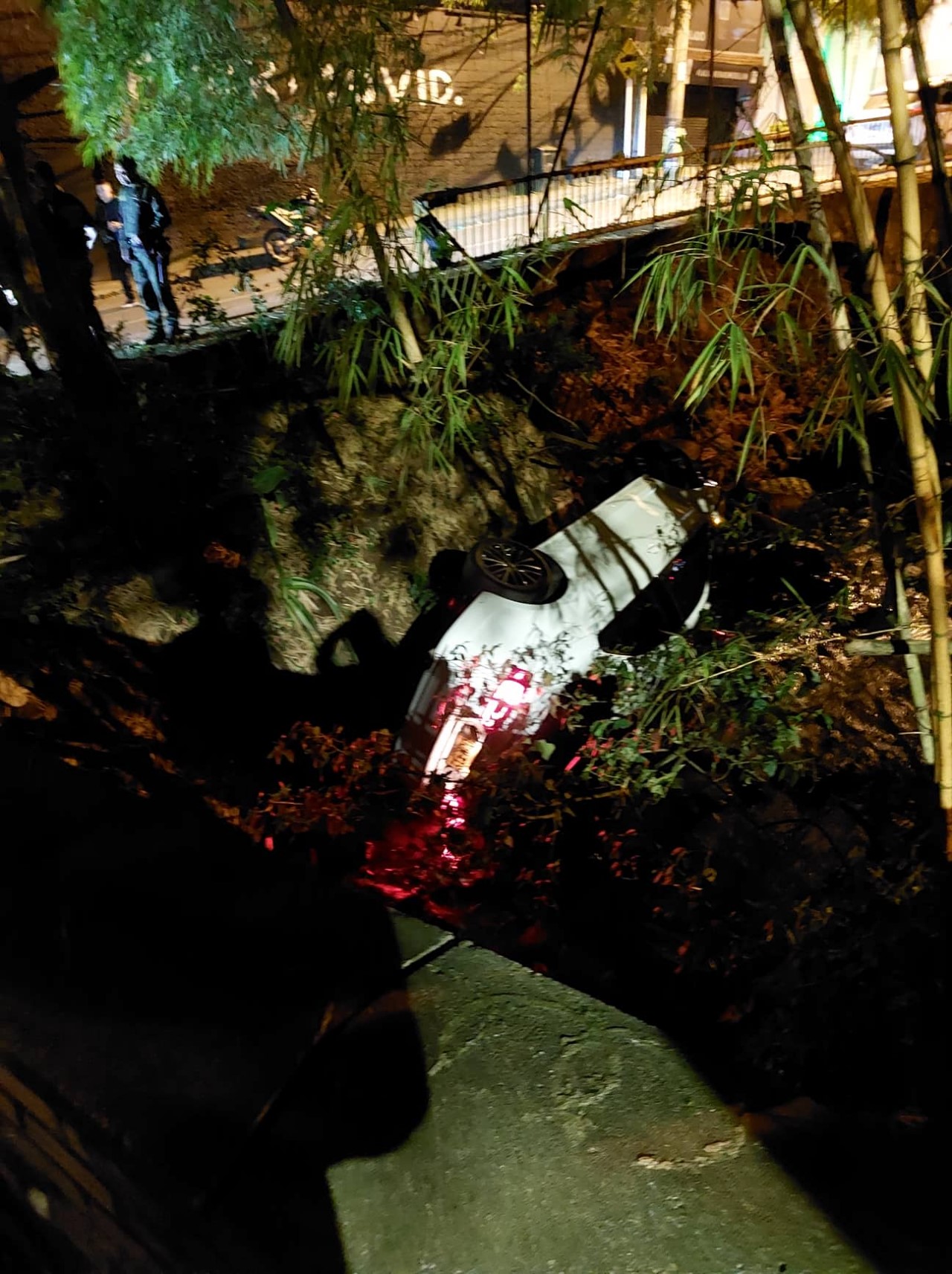 “Al parecer, el hombre en estado de embriaguez siguió derecho y fue a dar a la quebrada”, detalló la persona que compartió imágenes del accidente en el que presumen no se presentaron heridos de gravedad.