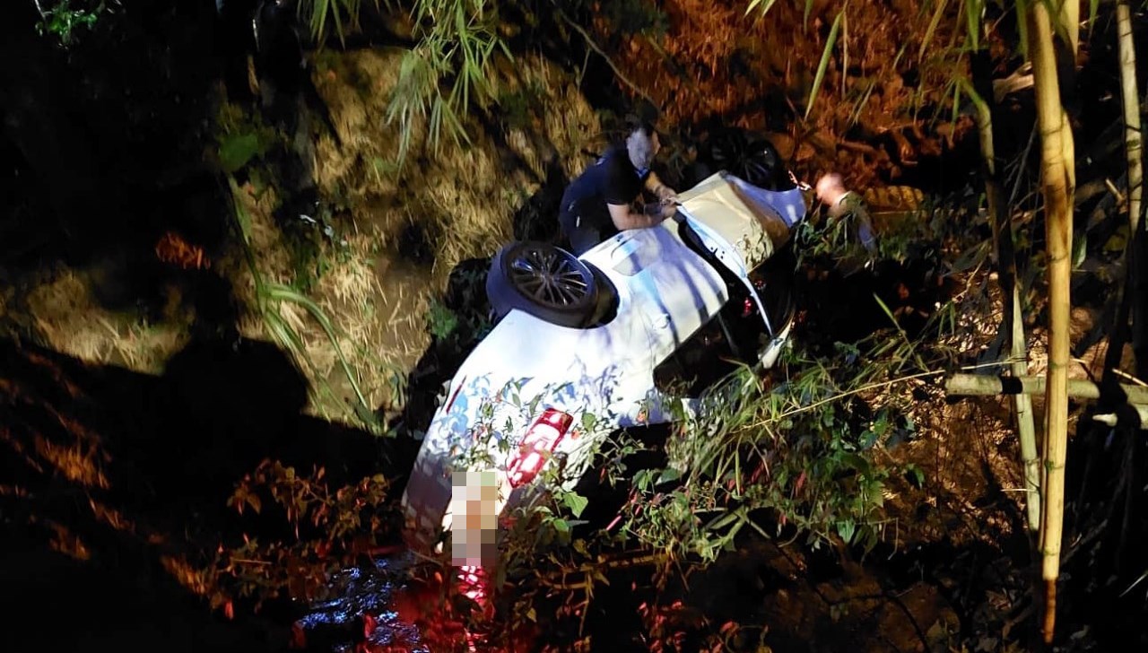 “Al parecer, el hombre en estado de embriaguez siguió derecho y fue a dar a la quebrada”, detalló la persona que compartió imágenes del accidente en el que presumen no se presentaron heridos de gravedad.