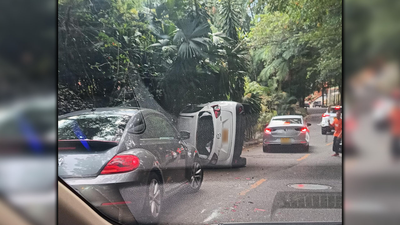 Carro se volcó en la Loma de Los Balcones, El Poblado