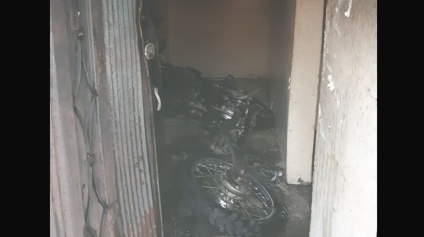 Según información preliminar, al parecer, un hombre se encontraba discutiendo con sus familiares cuando le habría prendido fuego a una motocicleta que tenía guardada al interior de una vivienda.