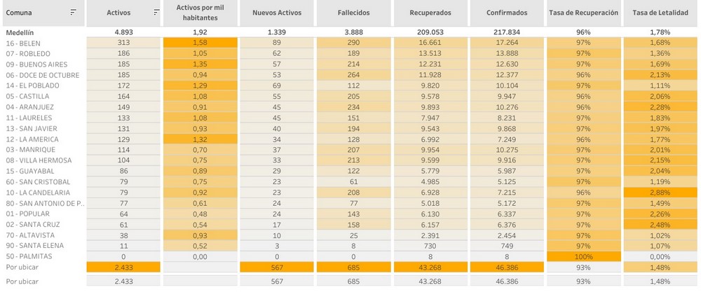 11 comunas de Medellín tienen más de 100 casos activos de covid, Belén tiene más de 300