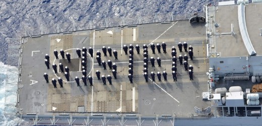 Fotografía cedida por el Ministerio británico de Defensa de la formación hecha por los marinos con la palabra niña, en honor al nacimiento de la hija de los duques de Cambridge, Guillermo y Catalina, hoy en el barco Type 45 HMS Dragon, en Portsmouth (R.Unido). EFE/Royal Navy