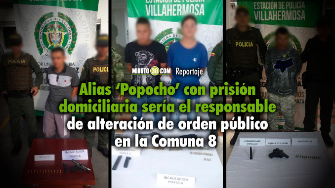 Operativos de la Policía Metropolitana lograron la captura de 4 integrantes del grupo delincuencial ‘13 de Noviembre’ que delinque en la Comuna 8 de Medellín, entre los cuales está alias ‘Popocho’ quien registra detención domiciliaria por el delito de homicidio y porte ilegal de armas de fuego en el 2010 y al momento de su captura se encontraba por fuera de su ‘casa por cárcel’.