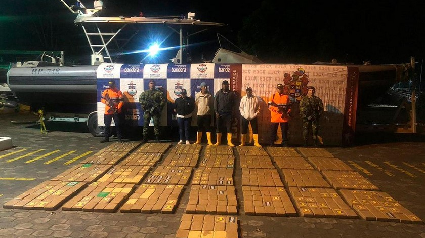 “La motonave, el cargamento y los tres sujetos, dos colombianos y un ecuatoriano, fueron movilizados hacia el Puerto de Tumaco, Nariño, donde integrantes del CTI de la Fiscalía, practicaron las Pruebas de Identificación Preliminar Homologadas (Piph) a la sustancia encontrada en los paquetes, arrojando positivo para un total de 715,9 kilogramos de clorhidrato de cocaína”, informó el Ejército.