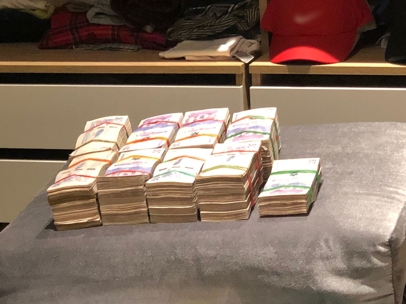 Durante las diligencias de allanamiento y registro fueron incautados más de 800 millones de pesos en efectivo y dos armas de fuego de corto alcance.