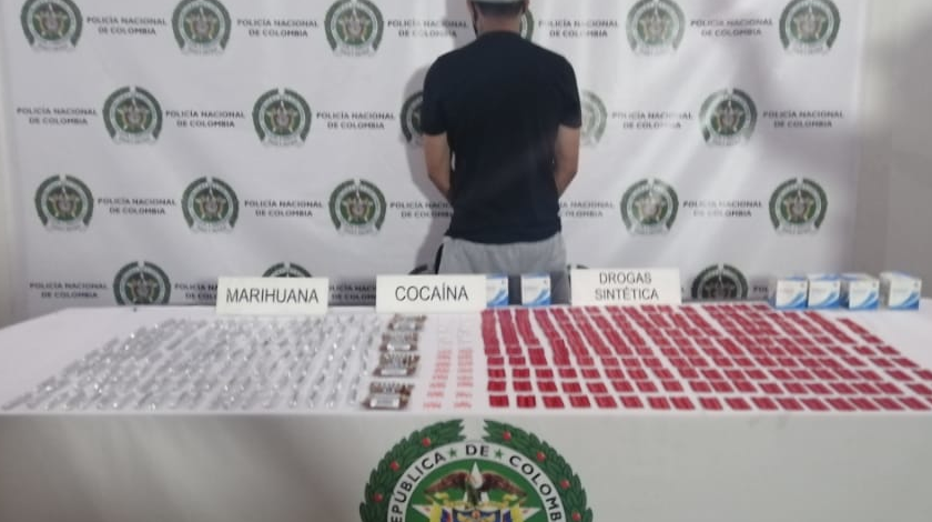 Según el reporte de las autoridades, sorprendieron a este sujeto que estaría vendiendo drogas en el sector del “Viaducto” y estaría utilizando un hotel del sector como sitio de almacenamiento y distribución.