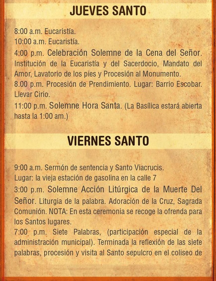 Programación de la Semana Santa para jueves, viernes y sábado santo y domingo de resurrección.